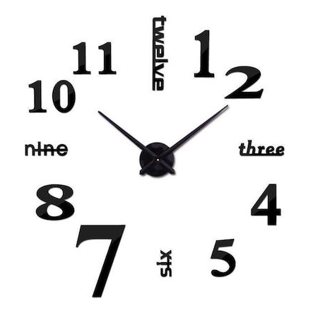 Ρολόι Τοίχου Αυτοκόλλητο 3D DIY 40cm Μαυρό