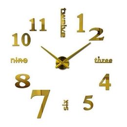 Ρολόι Τοίχου Αυτοκόλλητο 3D DIY 40cm Χρυσό