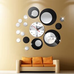 Ρολόι Τοίχου Αυτοκόλλητο 3D DIY Καθρέπτης Μαύρο