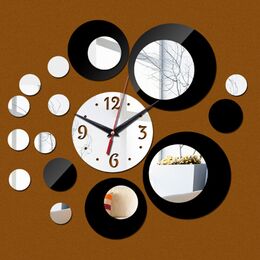 Αυτοκόλλητο Ρολόι Τοίχου 3D DIY με νούμερα και κύκλους από αφρώδες υλικό και από αλουμίνιο. Στην συσκευασία περιλαμβάνονται οδηγοί τοποθέτησης και όλα τα εξαρτήματα που χρειάζεστε για την εγκατάσταση.