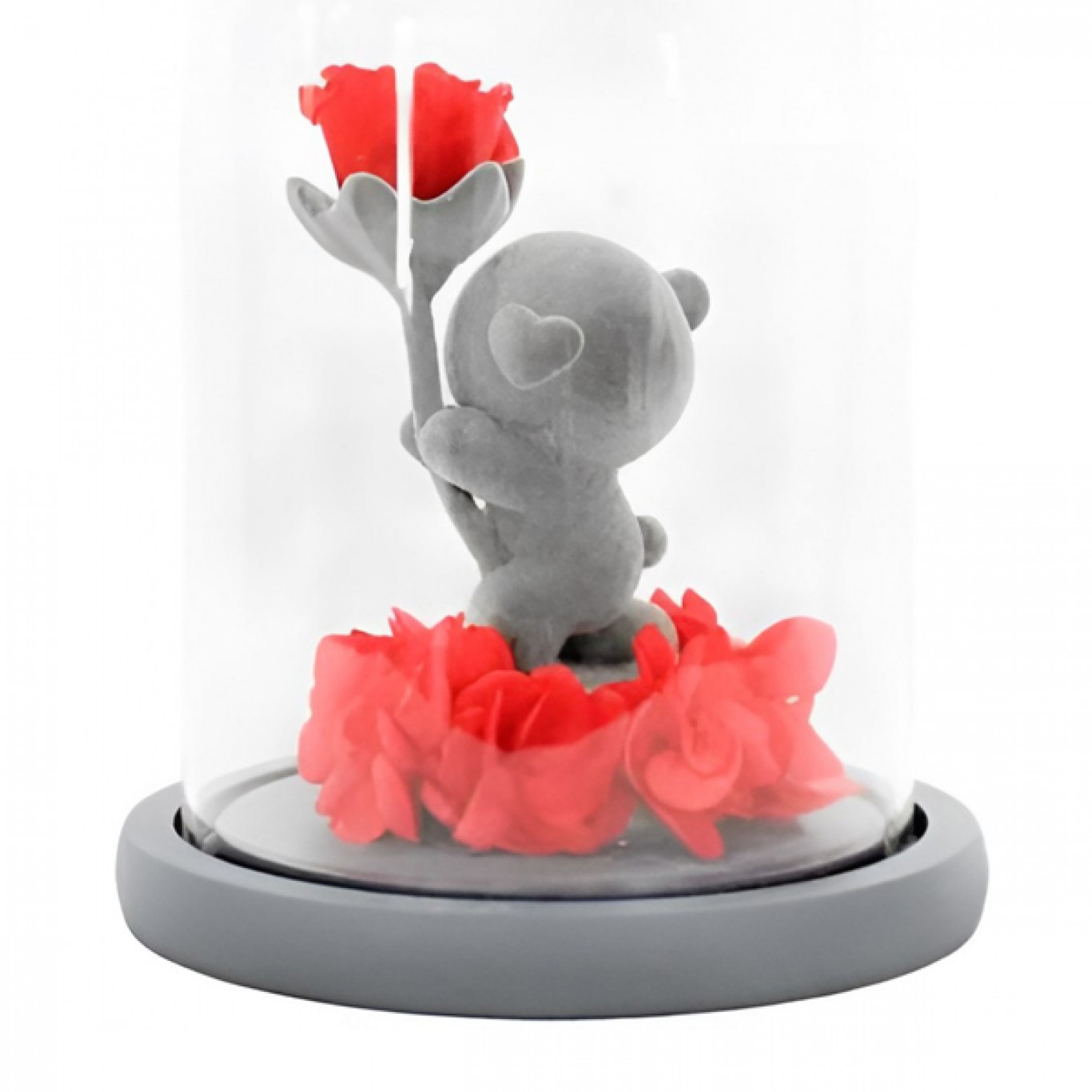 Ο γυάλινος θόλος φιλοξενεί ένα χαριτωμένο αρκουδάκι μαζί με ένα εντυπωσιακό τριαντάφυλλο, αναδεικνύοντας κάθε λεπτομέρεια της σύνθεσης μέσα από το διάφανο γυαλί.
