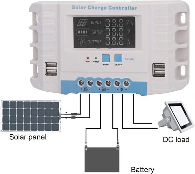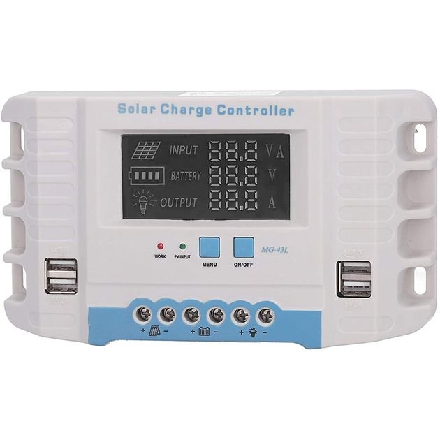 Ψηφιακός ρυθμιστής φόρτισης για φωτοβολταϊκά panel. Κατάλληλος για φωτοβολταϊκά συστήματα 12V/24V ισχύος 30A. Διαθέτει ευανάγνωστη LCD οθόνη για εύκολη απεικόνιση όλων των ενδείξεων του συστήματός σας και 4 θύρες USB. Αυτόματη αναγνώριση τάσης συστήματος.