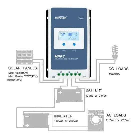 Ο ρυθμιστής φόρτισης της Epever για αυτόνομα φωτοβολταϊκά συστήματα 12V/24V διαθέτει τον έξυπνο αλγόριθμο ανίχνευσης του μέγιστου σημείου ισχύος MPPT ανάλογα την ηλιοφάνεια και τη θερμοκρασία μεγιστοποιώντας έτσι την απόδοση του συστήματος κατά 30% σε σχέση με τους PWM ρυθμιστές φόρτισης μπαταριών φωτοβολταϊκών.