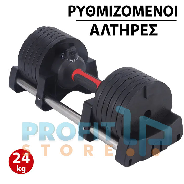 Σας επιτρέπουν να έχετε μια ολόκληρη σειρά αλτήρες, με μεταβλητό βάρος από 4 έως 24 kg, σε έναν! Αλλάξτε την προτιμώμενη επιλογή βάρους με μια απλή περιστροφή του επιλογέα.