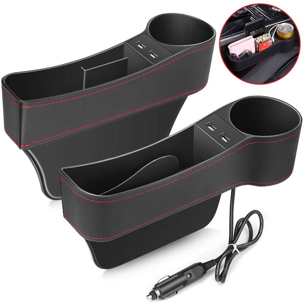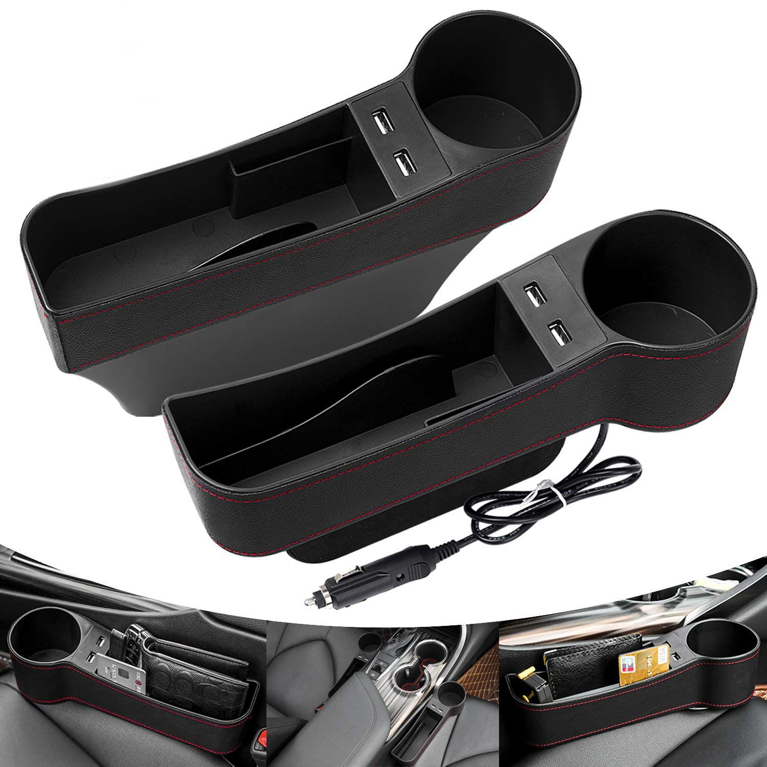 Σετ 2 Θήκες Οργάνωσης Αυτοκινήτου - Βάσεις με Ποτηροθήκη & Κουμπαρά & 4 USB - Car Storage Box USB