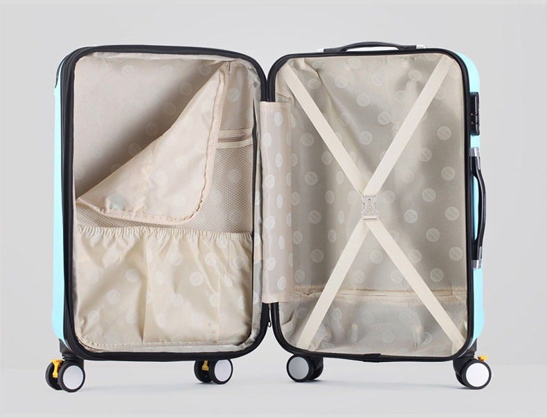 1 βαλίτσα ~59 x 42 x 23cm με τηλεσκοπικό χερούλι, ροδάκια περιστροφής 360 μοιρών και εσωτερικό χώρο αποθήκευσης.