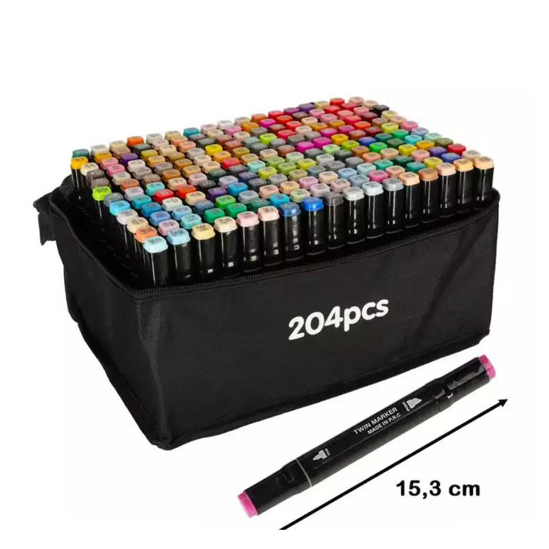 Σετ 204 Χρώματα Επαγγελματικοί Μαρκαδόροι Ζωγραφικής με Διπλή Μύτη - Board & Fine - Θήκη με φερμουάρ