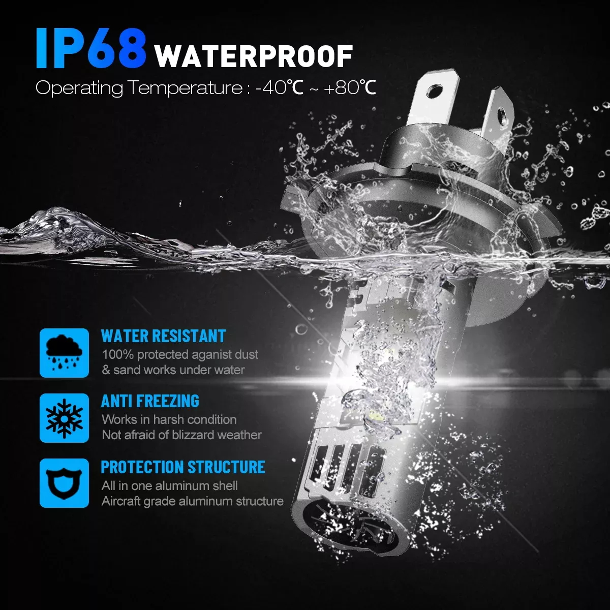 Σετ 2x Λάμπες LED Αυτοκινήτου H4 100W 24000lm 6500K Canbus - Ισχυρός Λευκός Φωτισμός - Novsight