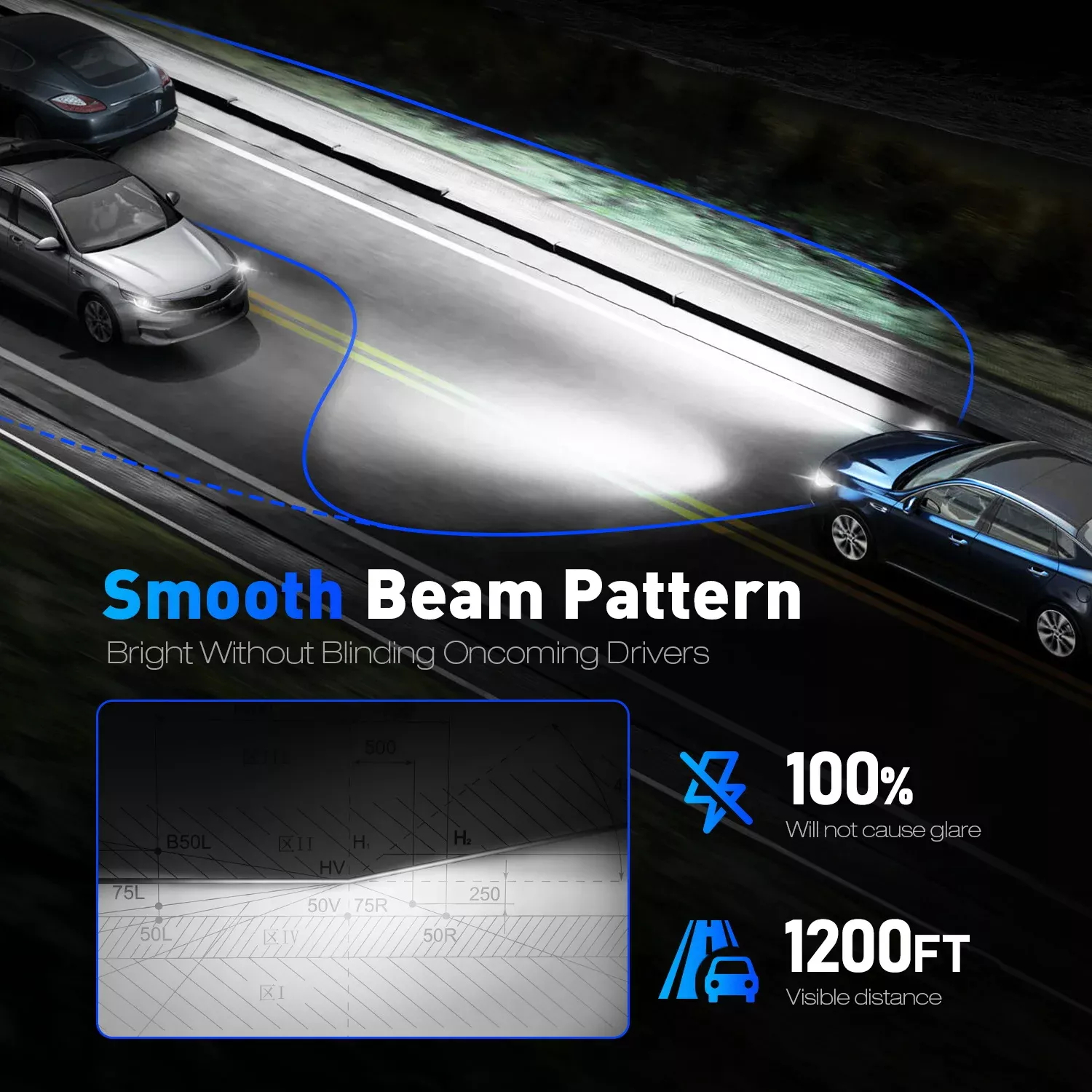 Η θερμοκρασία φωτός 6500K προσφέρει έντονο ψυχρό λευκό αποτέλεσμα, συμβάλλοντας στη βελτιωμένη αντίληψη του δρόμου.