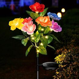 Το πολύχρωμο ηλιακό φωτιστικό εξωτερικού χώρου σε σχήμα τριαντάφυλλου συνδυάζει διακριτικό φωτισμό και διακοσμητική αισθητική σε έναν αρμονικό σχεδιασμό.
