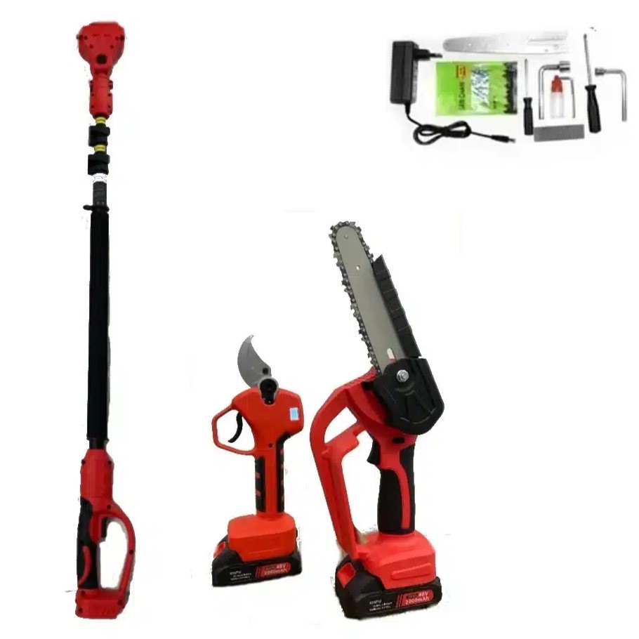 Σετ 3 σε 1 Αλυσοπρίονο – Ψαλίδι Επαναφορτιζόμενο με Τηλεσκοπικό Κοντάρι 2.2m & 2 Μπαταρίες 48V
