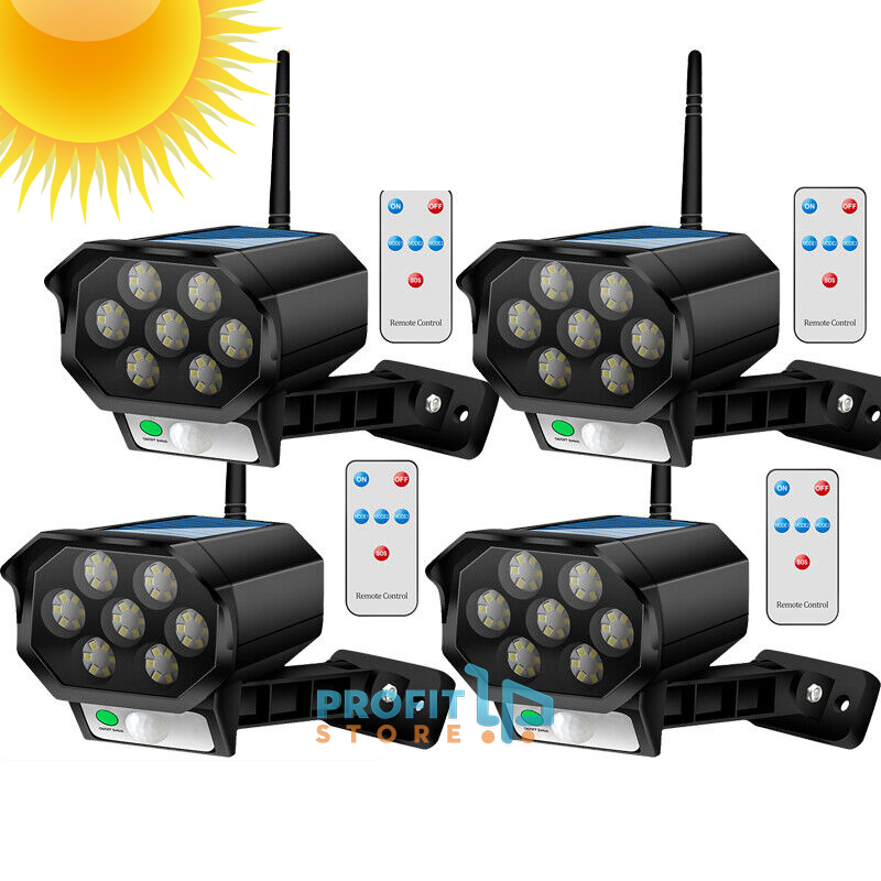 Σετ 4 Mini Αδιάβροχο Ηλιακό 42 LED Φωτιστικό Δρόμου & Ομοίωμα Κάμερας Ασφαλείας Dummy με Φωτοκύτταρο, Αισθητήρα Κίνησης & Τηλεχειριστήριο - Μαύρο