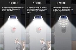 Διαθέτει 3+1 Λειτουργίες Φωτισμού Ασφάλειας, που βασίζονται στη λειτουργία του Αιθητήρα Κίνησης (PIR, εμβέλεια 3-5m) και Νυχτός (Night Sensor).
