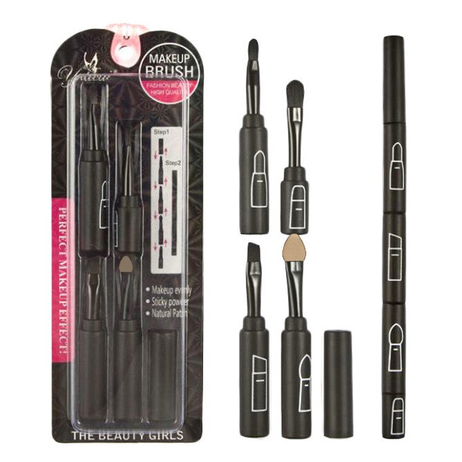 Ένα χρήσιμο σετ με 4 σε ένα πινέλα για μακιγιάζ. Ξεχάστε τα πολλά πινέλα και τα βουρτσάκια! Τώρα μπορείτε να τα έχετε όλα μαζί σε ένα, για να μην κουβαλάτε πολλά πινελάκια μαζί σας.