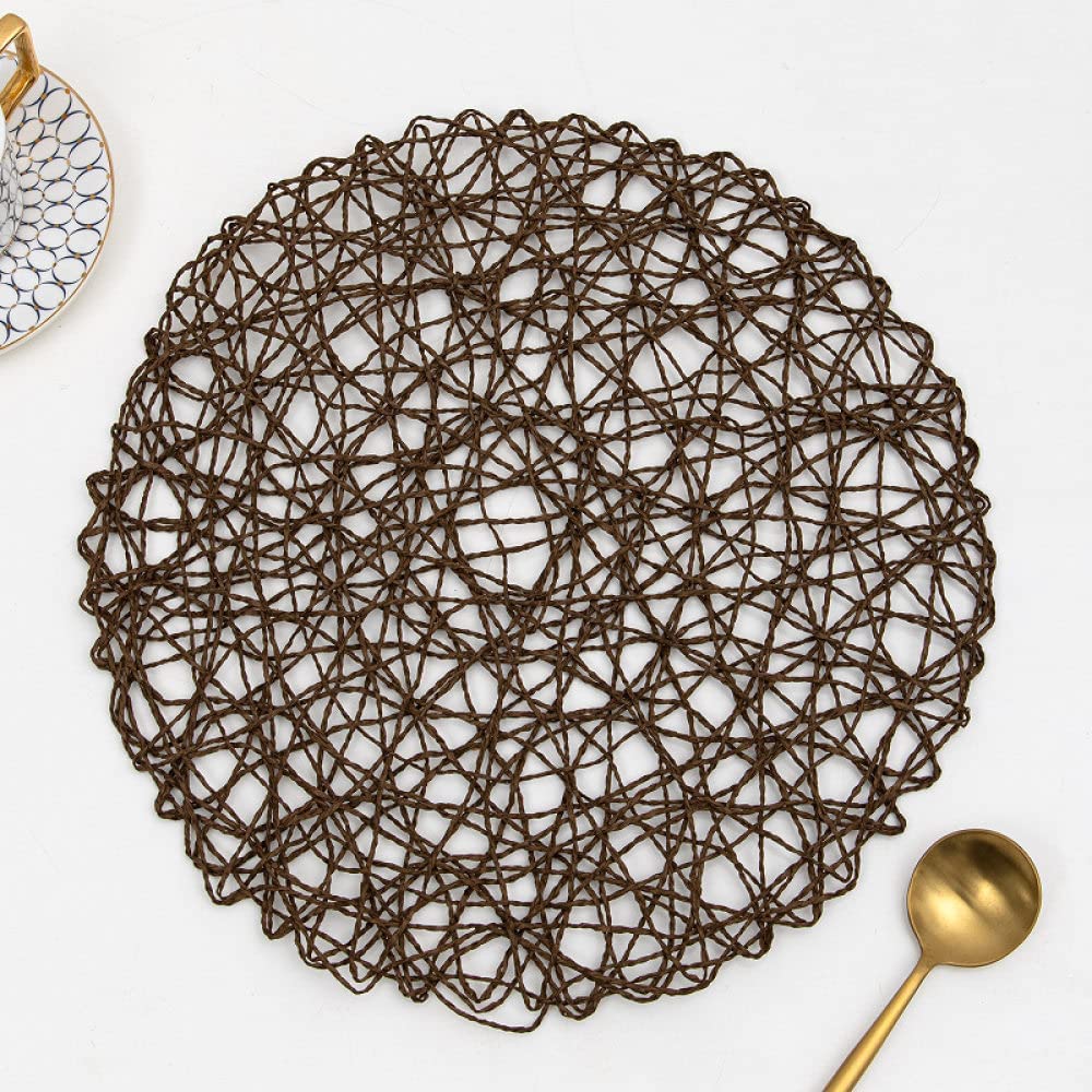Σετ 4x Βαμβακερό Στρογγυλό Σουπλά σε Σχέδιο Δίχτυ 38cm Καφέ