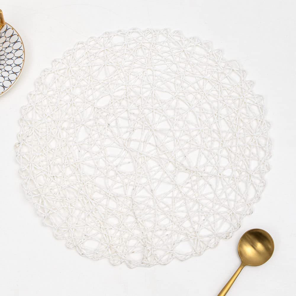 Σετ 4x Βαμβακερό Στρογγυλό Σουπλά σε Σχέδιο Δίχτυ 38cm Λευκό