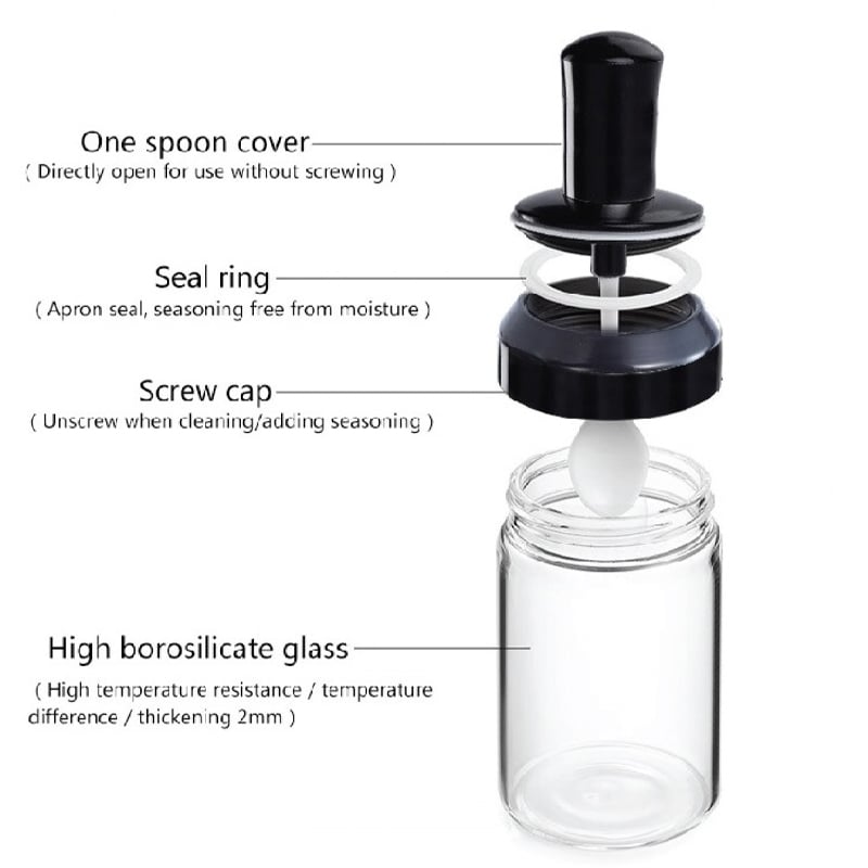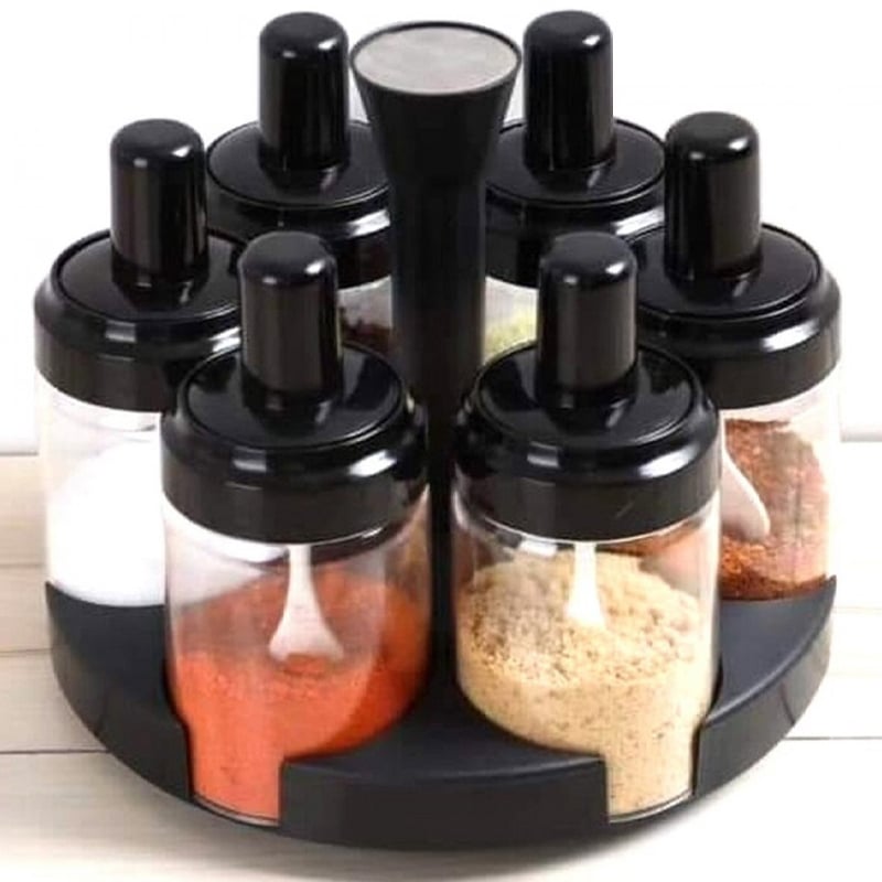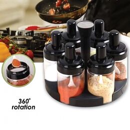 Σετ 6 Δοχεία Μπαχαρικών με Ενσωματωμένο Κουταλάκι & Περιστρεφόμενη Βάση Οργάνωσης & Αποθήκευσης