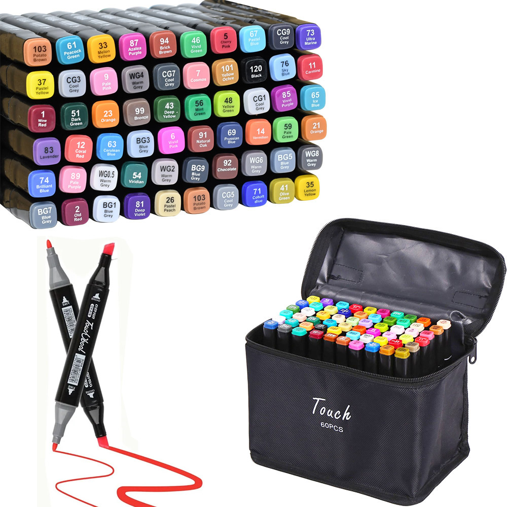 Σετ 60 Επαγγελματικοί Μαρκαδόροι Ζωγραφικής με Διπλή Μύτη - Βασικά & Παστέλ Χρώματα - Broad & Fine - Με Τσαντάκι Μεταφοράς
