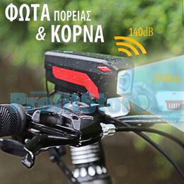 - Φως/Φακός Πορείας LED & Κόρνα Ποδηλάτου