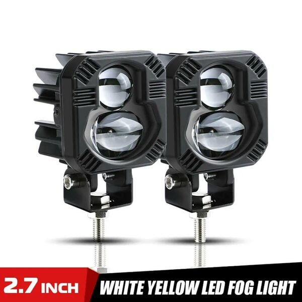Αδιάβροχα προβολάκια μηχανής με 2 φωτισμούς σε απόχρωση λευκού και κίτρινου.
