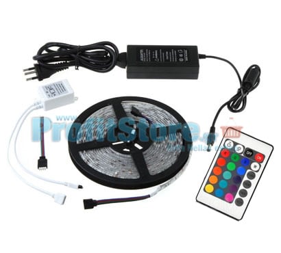 Πλήρες Σετ 5 μέτρων LED RGB Αδιάβροχης Αυτοκόλλητης Ταινίας 5050SMD DREAM COLOR 12V με τροφοδοτικό, controller και τηλεκοντρόλ.