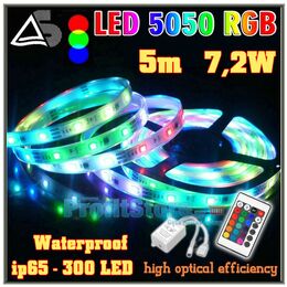 Σετ Αδιάβροχη Ταινία LED RGB 5050SMD 5 μέτρων 7,2W 300xLED 12V με τηλεχειριστήριο