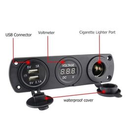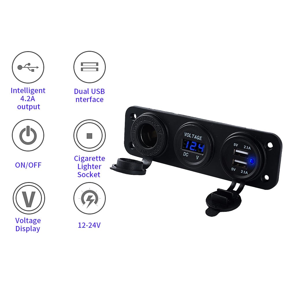 Σετ Αδιάβροχο 3 σε 1 Πάνελ Οργάνων Φόρτισης - Ψηφιακό Βολτόμετρο & Αντάπτορας Αναπτήρα με 2 Θύρες USB Γρήγορης Φόρτισης