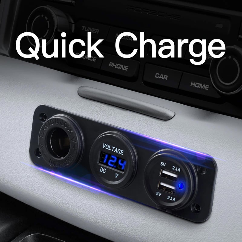 Καινοτόμο πάνελ που ενσωματώνει υποδοχή πρίζας αναπτήρα αυτοκινήτου, φωτιζόμενο ψηφιακό βολτόμετρο και όργανο φόρτισης με δύο θύρες USB!