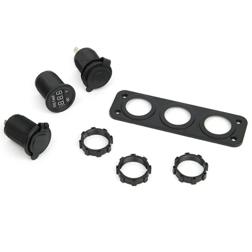 - 1 x Σετ Αδιάβροχο 3 σε 1 Πάνελ Οργάνων Φόρτισης - Ψηφιακό Βολτόμετρο & Αντάπτορας Αναπτήρα με 2 Θύρες USB Γρήγορης Φόρτισης