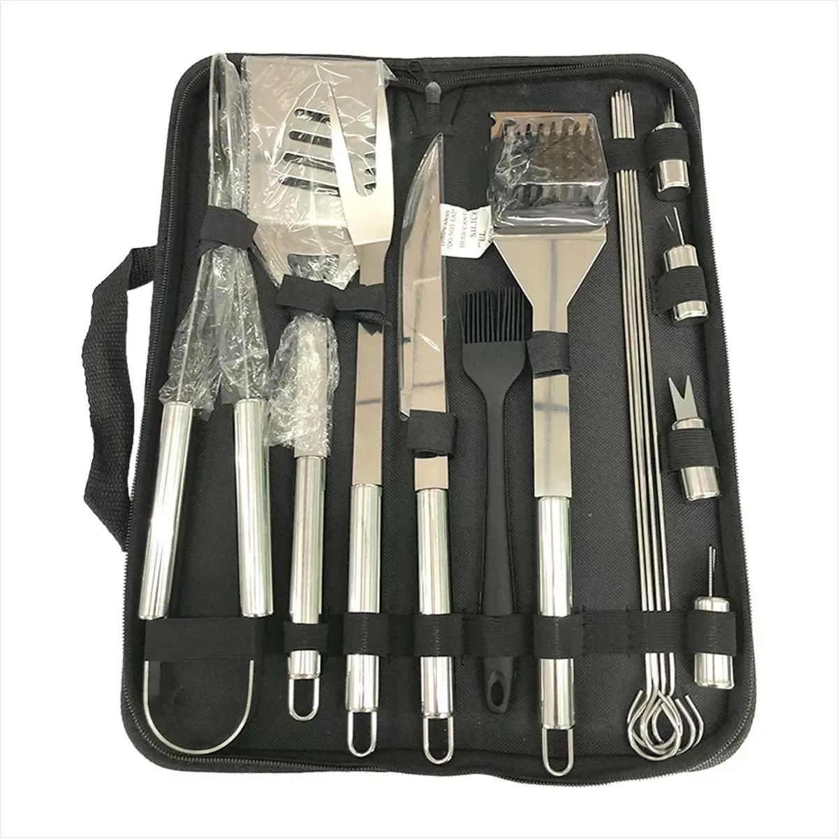 Σετ Ανοξείδωτων Εργαλείων Μπάρμπεκιου 15τμχ σε Μαύρη Υφασμάτινη Θήκη