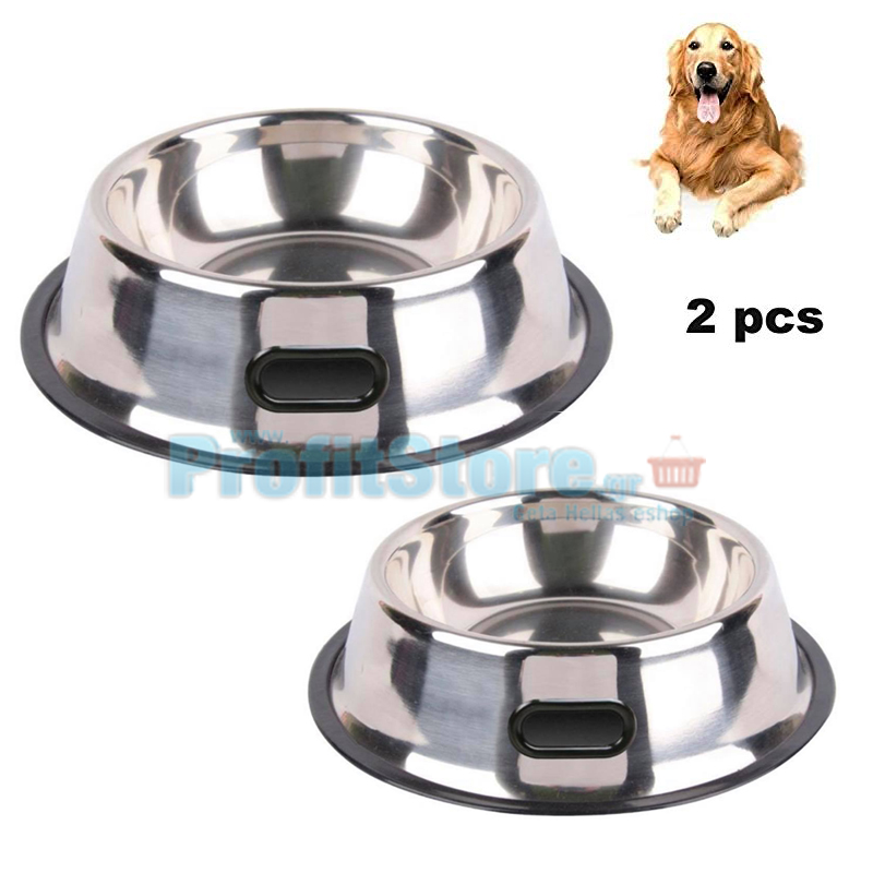 Σετ Αντιολισθητικά Ανοξείδωτα Μπολ Φαγητού - Νερού Σκύλων 22cm και 34cm