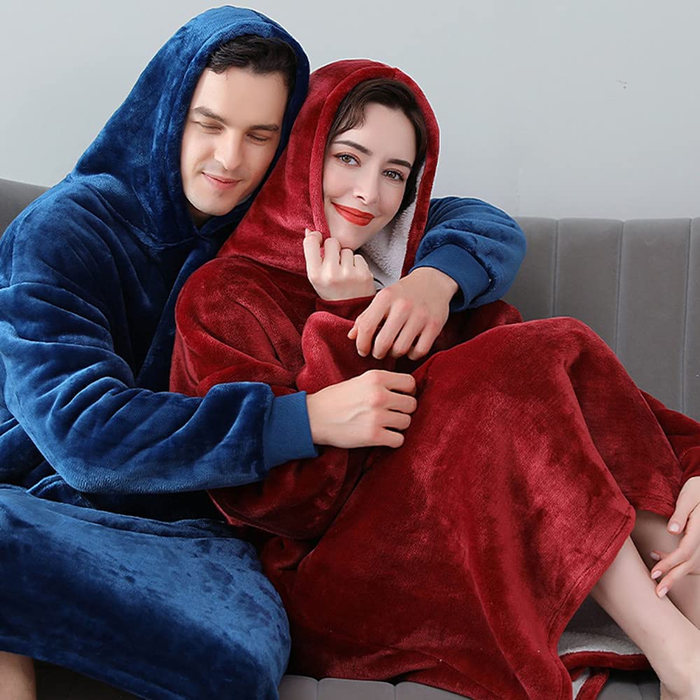 Σετ SoftHug Φλις Κουβέρτα με Μανίκια, Κουκούλα & Ζεστό Γουνάκι - Oversized Φούτερ για το σπίτι - Μπλε & Κόκκινο