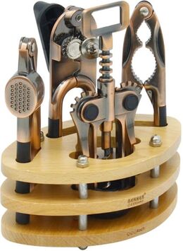 Ένα σετ εργαλείων κουζίνας με ξύλινη βάση σε μοντέρνο design. Όλα τακτοποιημένα σε μια όμορφη, ανθεκτική ξύλινη βάση. Ένα κόσμημα που δεν πρέπει να λείπει από καμία κουζίνα σπιτιού ή επαγγελματικού χώρου.