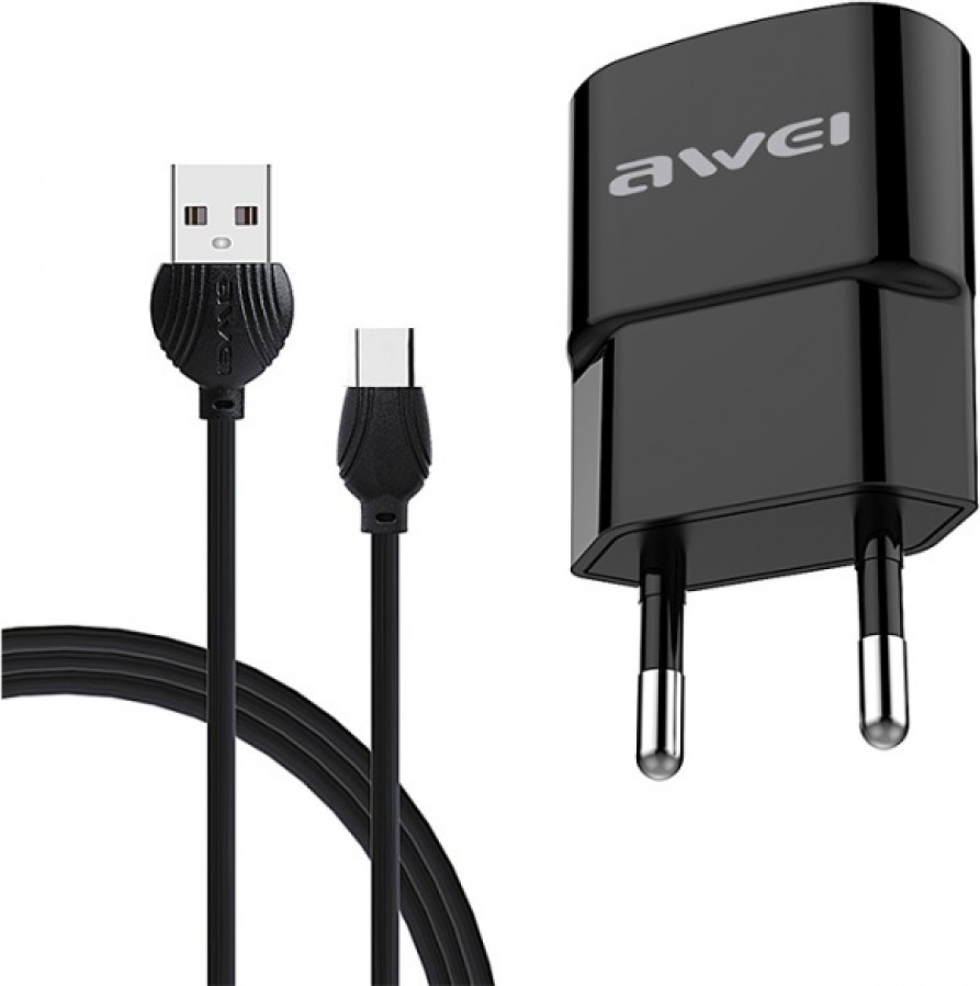 Σετ Φορτιστής - Καλώδιο Φόρτισης AWEI 2.1A 1.2m USB Type C