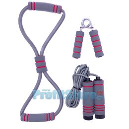 Σετ Γυμναστικής Ταξιδιού με Σκοινάκι, Ταναλάκι - Λαβή Πήχη & Λάστιχο Οκτάρι Αντίστασης Aerobic - Όργανα Καθημερινής Εκγύμνασης