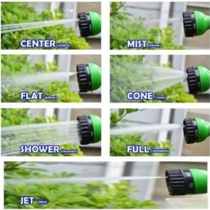 Το πολυλειτουργικό πιστόλι διαθέτει 7 επιλογές ψεκασμού, ώστε να προσαρμόζεται από απαλό ομίχλωμα για ευαίσθητα φυτά, μέχρι ισχυρό πίδακα για απαιτητικό καθάρισμα.