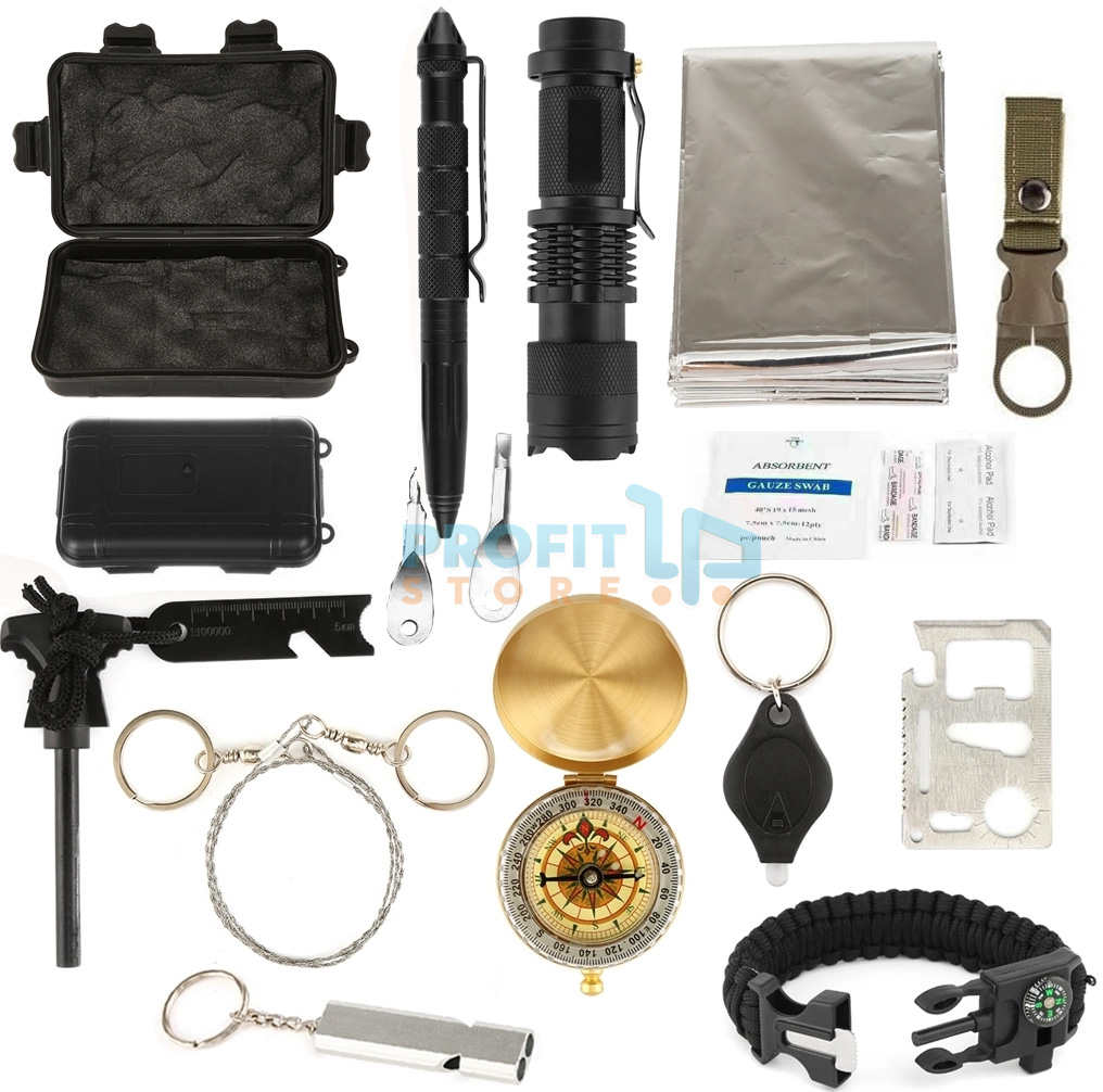 Σετ Κασετίνα Επιβίωσης & Έκτακτης Ανάγκης με Ιατρικά, Εργαλεία Επιβίωσης, Πυξίδα, Πριόνι & Θερμική Κουβέρτα
