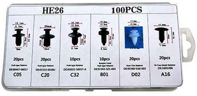 Σετ Κλιπ - Κασετίνα για Εσωτερικό, Ταπετσαρία, Μοκέτες Αυτοκινήτου & Προφυλακτήρες HE26 100PCS