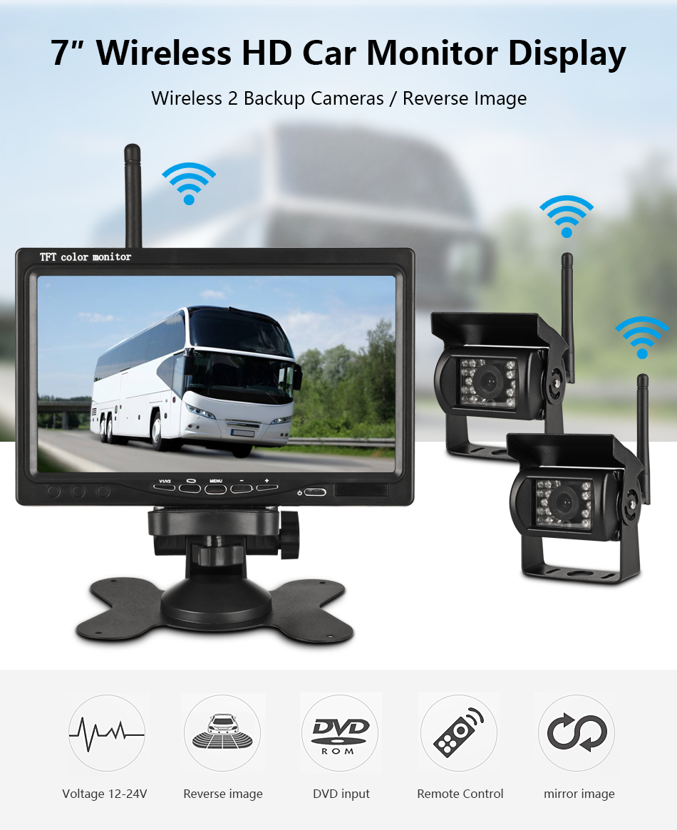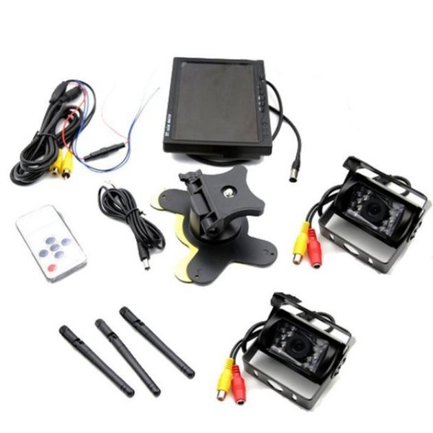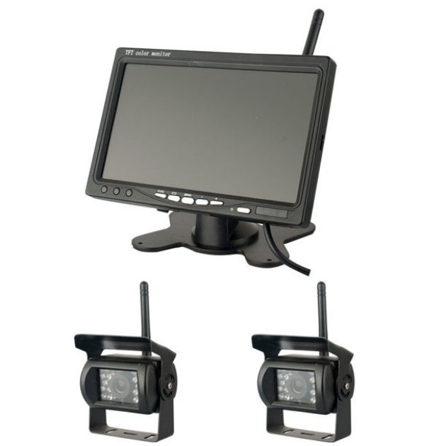 Σετ 2 Ασύρματες Κάμερες Οπισθοπορείας & Οθόνη Monitor 7inch TFT 12V - 24V Φορτηγού & Αυτοκινήτου ΙΧ με Νυχτερινή Λήψη IR - Σύστημα Παρκαρίσματος Πούλμαν με Τηλεχειριστήριο