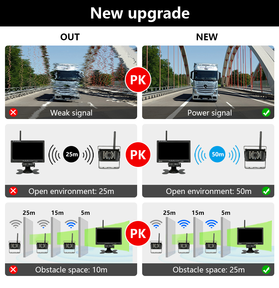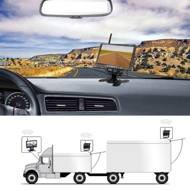 Σύστημα παρκαρίσματος - μανούβρας με 2 Ασύρματες Κάμερες Οπισθοπορείας και μεγάλη ευδιάκριτη οθόνη 7 inch για πλήρη ορατοτήτα της περιφέρειας του οχήματος.