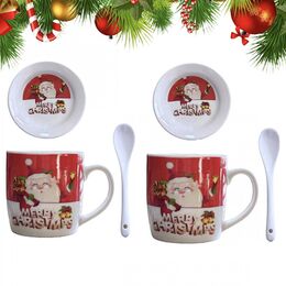 Σετ με 2 Χριστουγεννιάτικες Κεραμικές Κούπες 320ml με Σχέδιο Άγιου Βασίλη και με Πιατάκια και Κουταλάκια