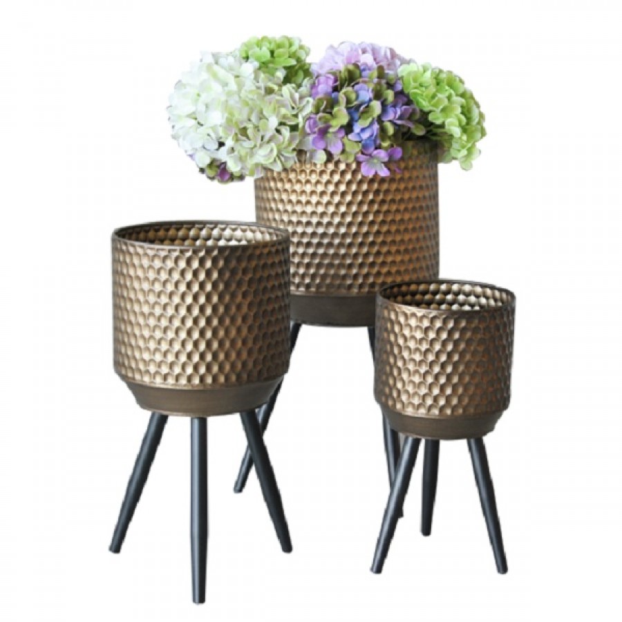 Σετ με 3 Μεταλλικές Διακοσμητικές Γλάστρες σε Χάλκινο Χρώμα - Bronze Decorative Pot