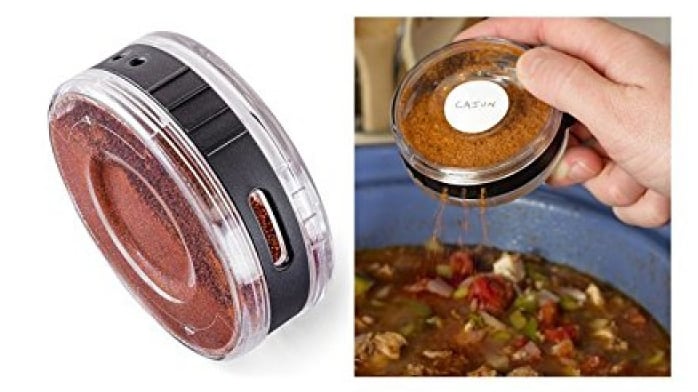 Βαζάκια μπαχαρικών, τα οποία τοποθετούνται το ένα δίπλα στο άλλο με ασφάλεια, και είναι διάφανα για να βλέπετε το περιεχόμενο.