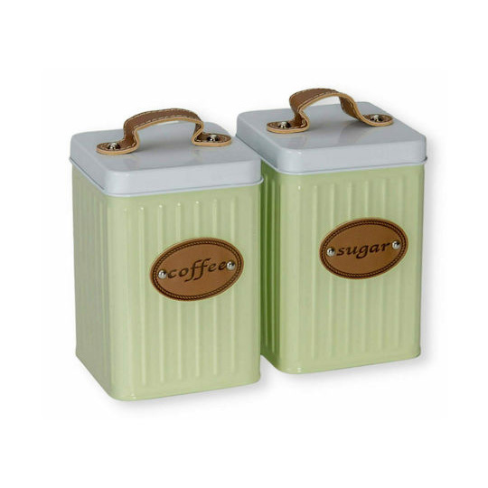 Σετ Μεταλλικά Δοχεία για Καφέ & Ζάχαρη με Δερμάτινες Λεπτομέρειες - Λαχανί