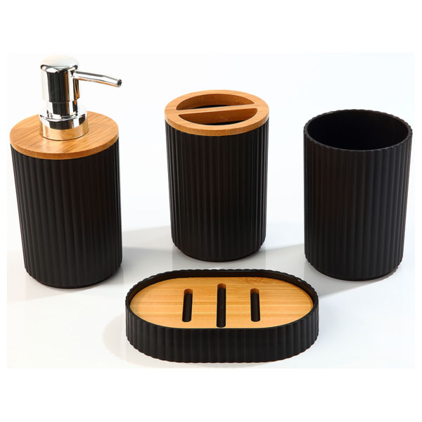 Σετ Μπάνιου 4 Τεμαχίων με Ξύλινες Λεπτομέρειες Μαύρο