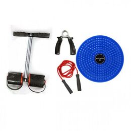 Κάντε την γυμναστική σας με αυτό το σετ οργάνων γυμναστικής που αποτελείται απο σκοινάκι, όργανο έλξεων, περιστρεφόμενο δίσκο ισορροπίας και ταναλάκι χεριών.