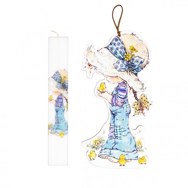 Σετ Παιδική Λαμπάδα με Εκτύπωση Κοριτσάκι Στην Φάρμα σε Κερί Πλακέ 4,5x29,5cm & Αναμνηστικό Ξύλινο Καδράκι 17x32cm