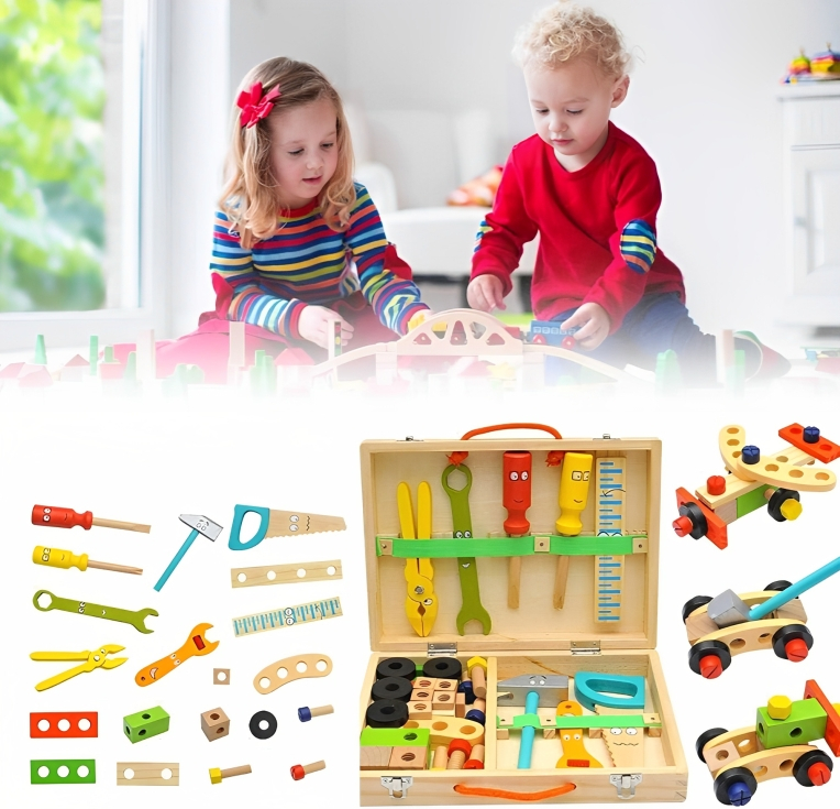 Αυτό το Ξύλινο Βαλιτσάκι με Εργαλεία, ειδικά σχεδιασμένο για παιδιά από 3 ετών, θα χαρίσει ατελείωτες ώρες διασκέδασης!