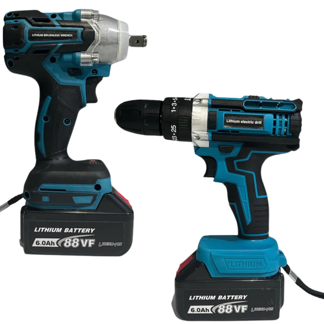 Περιλαμβάνει δραπανοκατσάβιδο και παλμικό μπουλονόκλειδο με επαναφορτιζόμενες μπαταρίες λιθίου, όλα προσεκτικά τοποθετημένα σε ένα ανθεκτικό βαλιτσάκι μεταφοράς για εύκολη αποθήκευση και μετακίνηση.