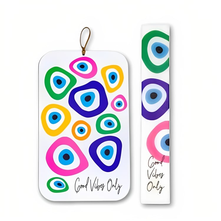 Επιλέγετε ένα δώρο με έντονο συμβολισμό, καθώς το μοτίβο με τα ματάκια παραπέμπει στην προστασία και την καλή τύχη, ενώ τα ζωηρά χρώματα χαρίζουν παιχνιδιάρικο χαρακτήρα.
